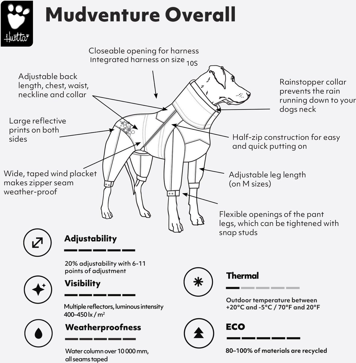 Hurtta Mudventure Overall ECO Waterproof Dog Snowsuit Coat, Raven, 10-in