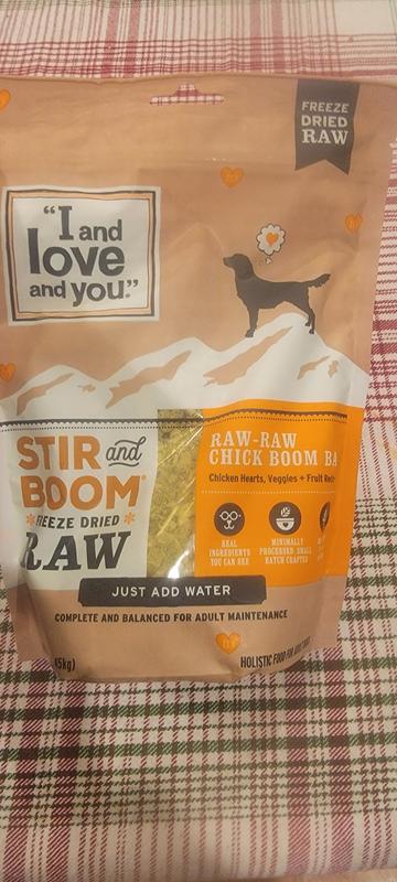 - I and Love and You Stir and Boom Raw Raw Turk Boom Ba Dinner Grain-Free Dehydrated Dog Food, 1-lb bag$19.99 Chewy Price$18.99 Autoship PricePromo, New Customers Only: Spend $49+, Get $20 eGift Card