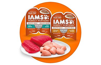 - Iams Perfect Portions Healthy Adult Tuna Recipe Grain-Free Soft Pate Wet Cat Food, 2.6-oz tray, case of 24 twin-packs$39.80 Chewy Price$40.56 List Price$37.81 Autoship PricePromo, New Customers Only: Spend $49+, Get $20 eGift Card