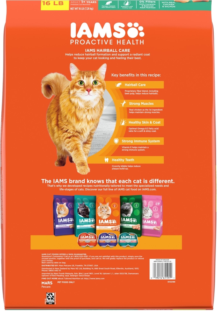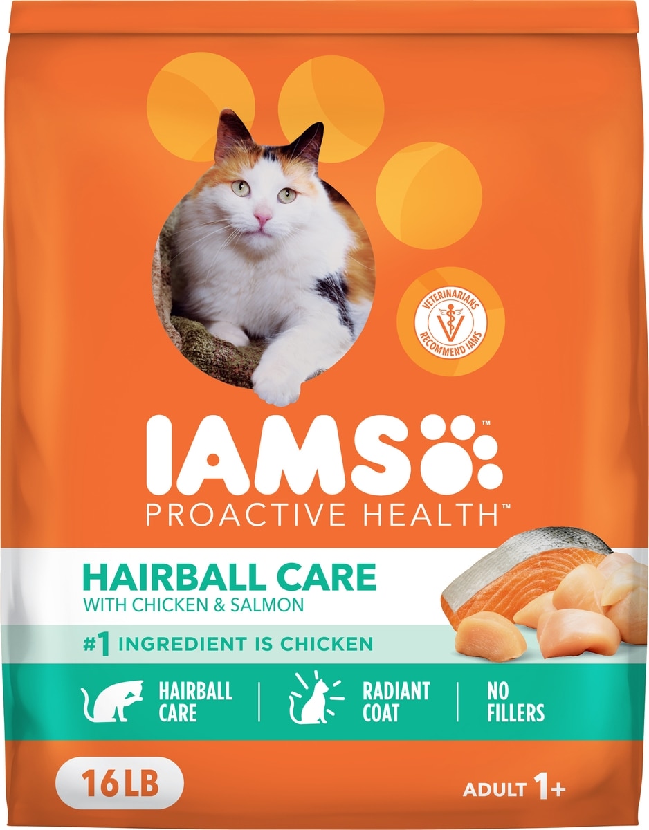 Iams ProActive Health Adult Hairball Care with Chicken & Salmon Dry Cat Food, 16-lb bag