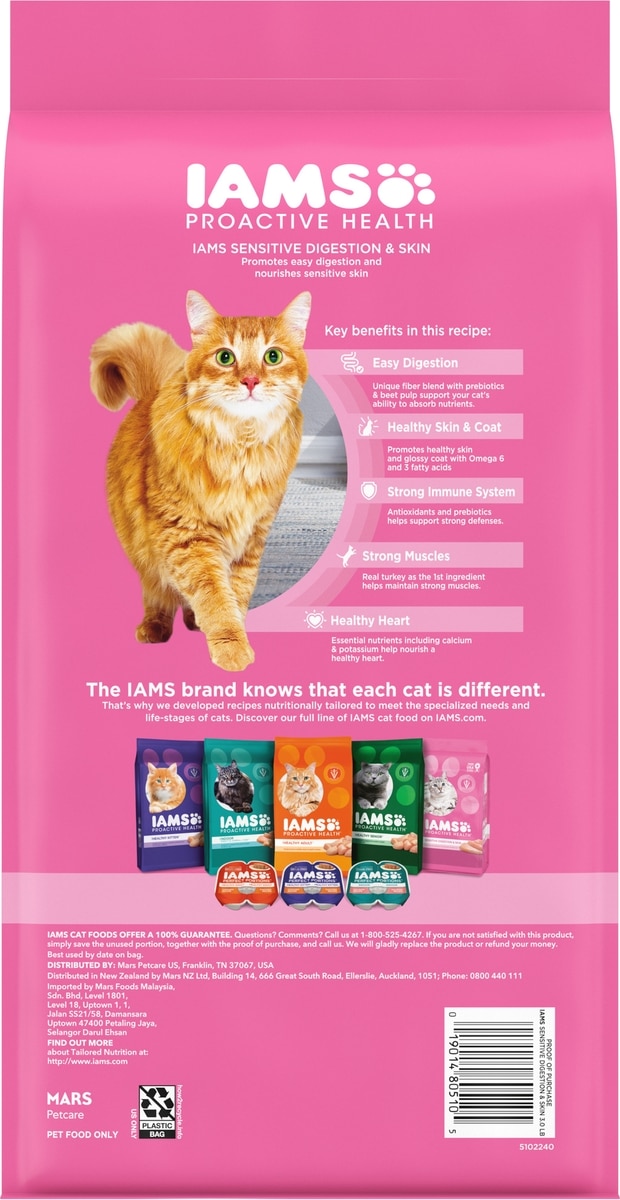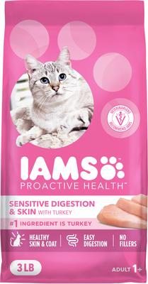 Iams Proactive Health Sensitive Digestion & Skin Turkey Dry Cat Food, 3-lb bag
