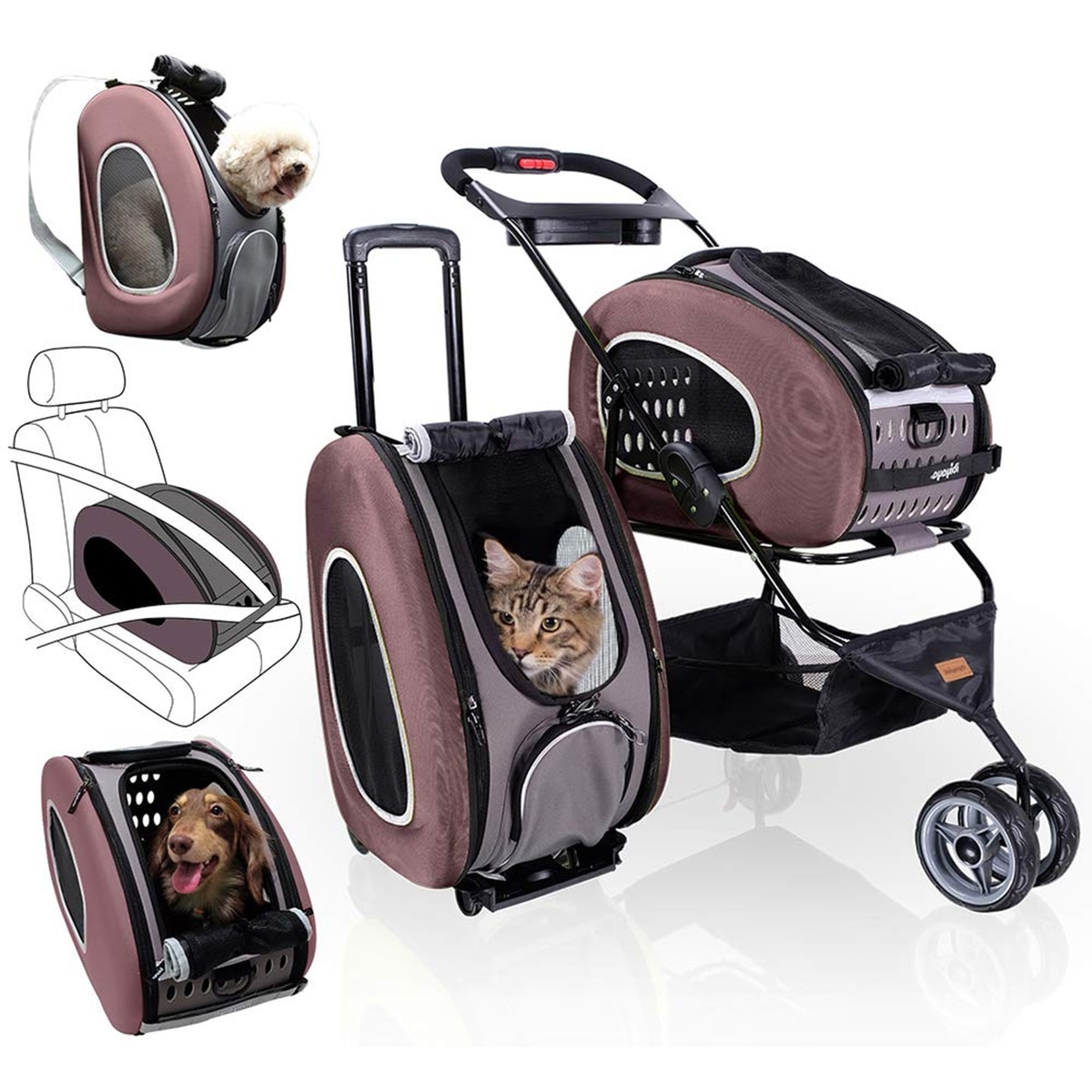 Ibiyaya 5-in-1 Combo EVA Airline-Approved Dog & Cat Carrier & Stroller, Brown