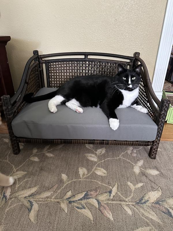 Iconic Pet Maharaja Rattan Sofa Cat & Dog Bed with Removable Cover, Caramel & Mocha