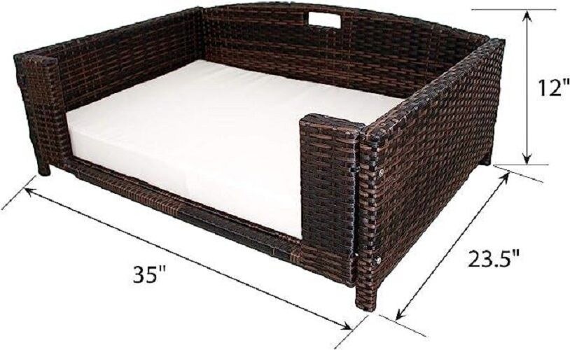 Iconic Pet Rattan Rectangular Sofa Cat & Dog Bed with Removable Cover, Espresso, Medium