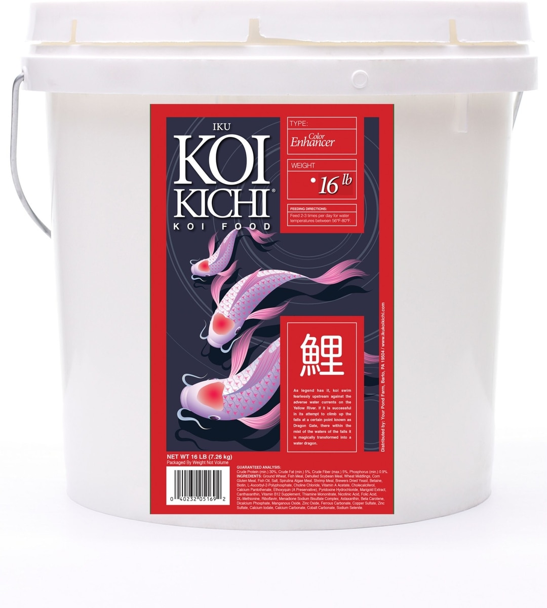 Fish meal, Dehulled Soybean Meal, Ground Wheat, Corn Gluten Meal, Wheat Middlings, Fish Oil, Shrimp meal, Salt, Spray Dried Porcine Blood Cells, Dehydrated Alfalfa Meal, Brewers Dried Yeast, Spirulina Algae Meal, Betaine, L-Ascorbyl-2-Polyphosphate, Biotin, Choline Chloride, Vitamin A Acetate, Cholecalciferol, Calcium Pantothenate, Pyridoxine, Hydrochloride, Ethoxyquin (A Preservative), Tagetes Extract, Canthaxanthin, Vitamin B12 Suppliment, Thiamine Mononitrate, Nicotinic Acid, Folic Acid, Riboflavin, Menadione, Sodium Bisulfite Complex, DL-Methionine, Astaxanthin, Beta Carotene, Diacalcium Phosphate, Manganous Oxide, Zinc Oxide, Ferrous Carbonate, Copper Sulfate, Zinc Sulfate, calcium Iodate, calcium Carbonate, Colbalt Carbonate, Sodium Selenite.