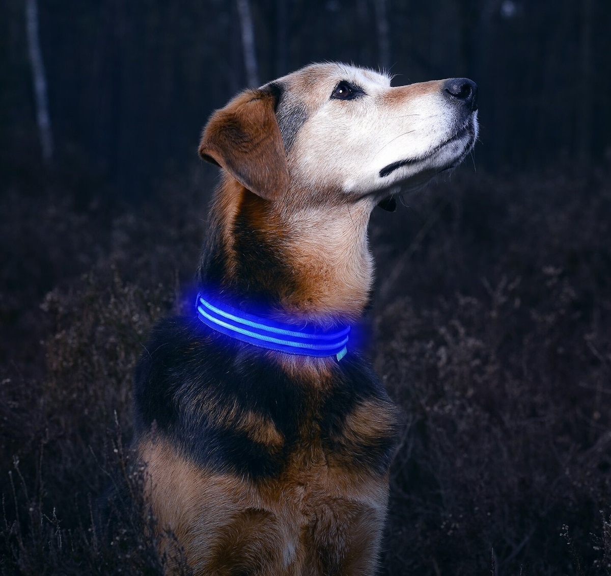 Illumiseen LED USB Rechargeable Nylon Dog Collar, Blue, X-Small: 9 to 13.7-in neck