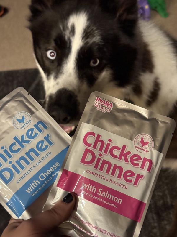 - Inaba Chicken Dinner Salmon & Beef Wet Dog Food, 2.4-oz pouch, case of 15Rated 4.2 out of 5 stars4.214Reviews$13.23 Chewy Price$13.23$14.99 List Price$14.99$12.57 Autoship Price$12.57Promo, Spend $100, Get $30 eGift Card with code NEWYEAR +1 deal