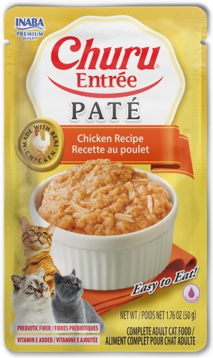 - Churu Entrée Paté features a soft texture with shredded chicken or wild-caught tuna that breaks apart easily for a satisfying meal.