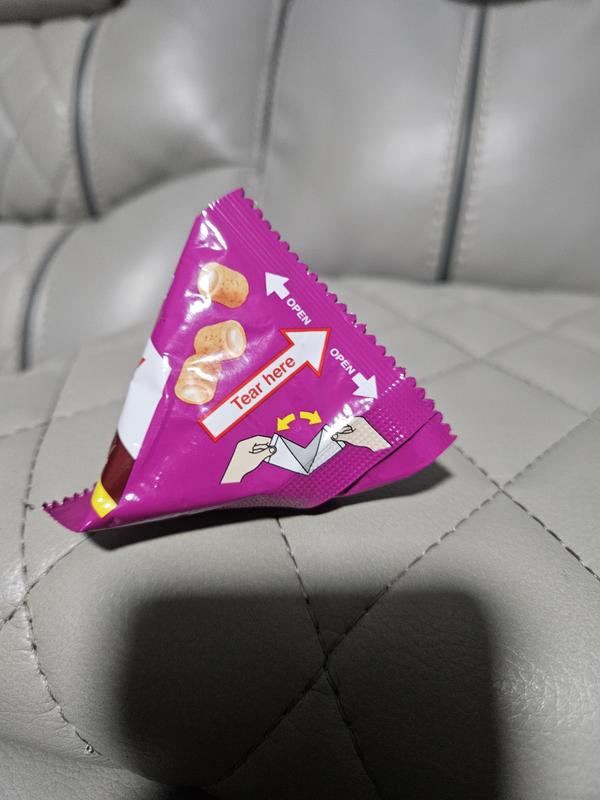 This packaging is better than others. These snax are smelly and usually squashed. Kind of a hassle to work with.