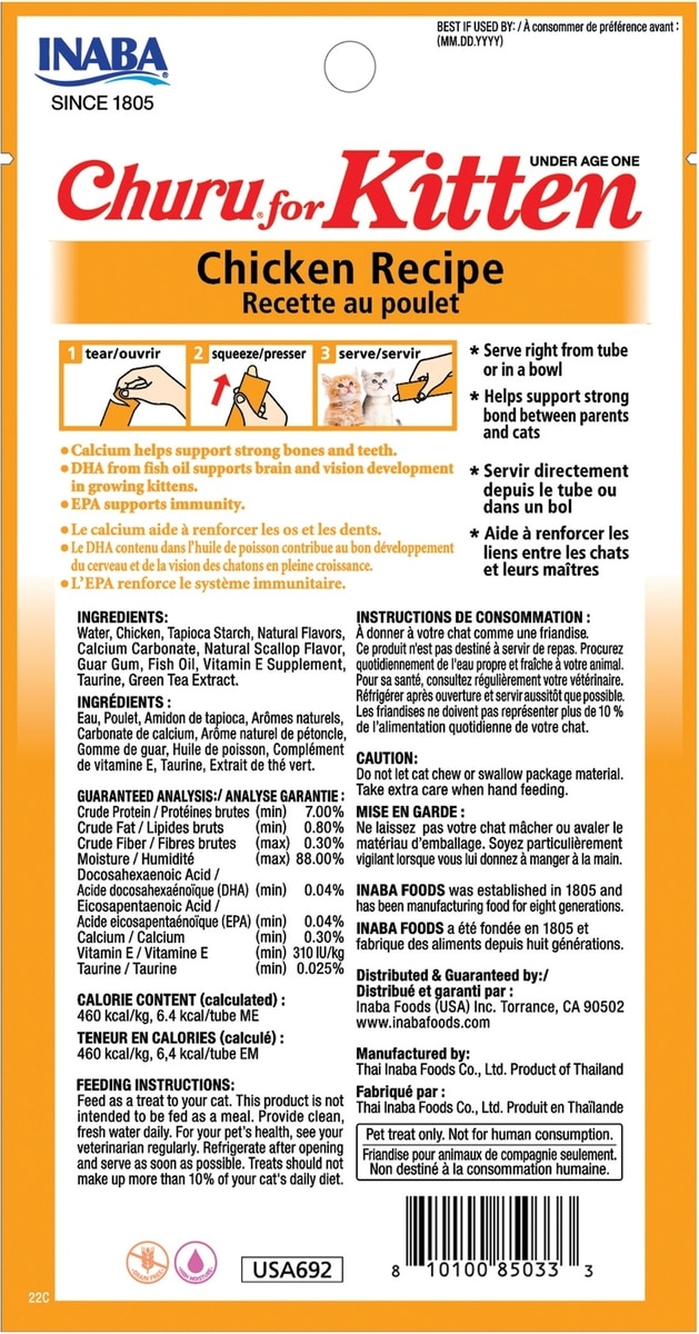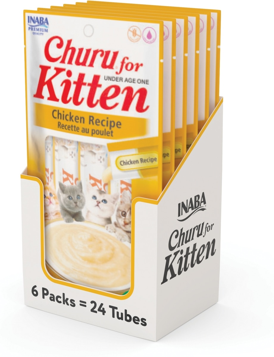 - Inaba Churu for Kittens Tuna Recipe Puree Grain-Free Lickable Cat Treats, 0.5-oz tube, 4 count$3.99 Chewy Price$3.79 Autoship PricePromo, New Customers Only: Spend $49+, Get $20 eGift Card