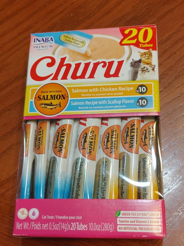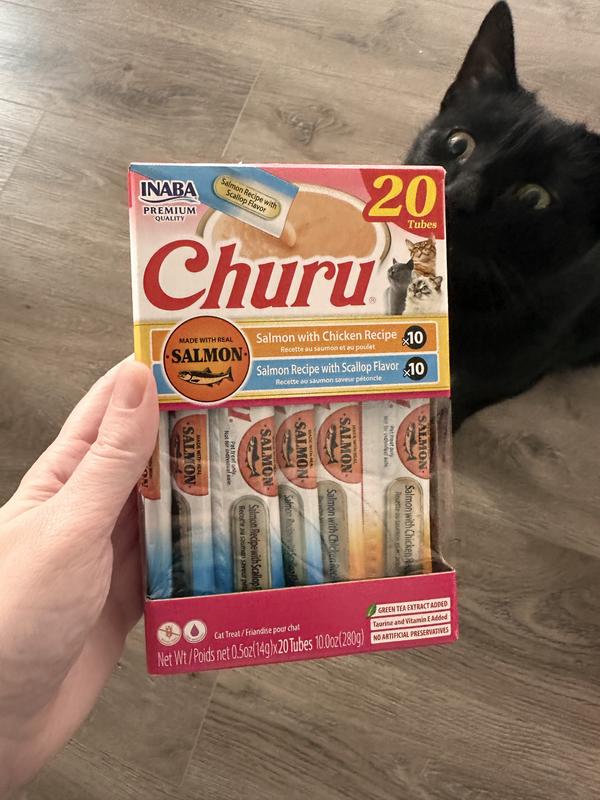 - DealInaba Churu Salmon & Tuna Variety Creamy Puree Grain-Free Lickable Cat Treats, 0.5-oz tube, 20 count$16.99 Chewy Price$16.14 Autoship PricePromo, Spend $100, Get $30 eGift Card with code NEWYEAR +1 deal