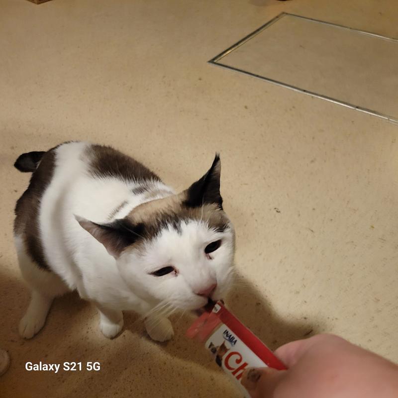 My senior went nuts over this treat. I must admit though, so did my younger cats. It’s easy to serve up with just a quick snip of the scissors. She lapped it up in no time. I love giving my cats treats and this Churu is a high quality and tasty treat for my cat. Unfortunately it is on the expensive side and I will give this treat but only occasionally due to the cost.