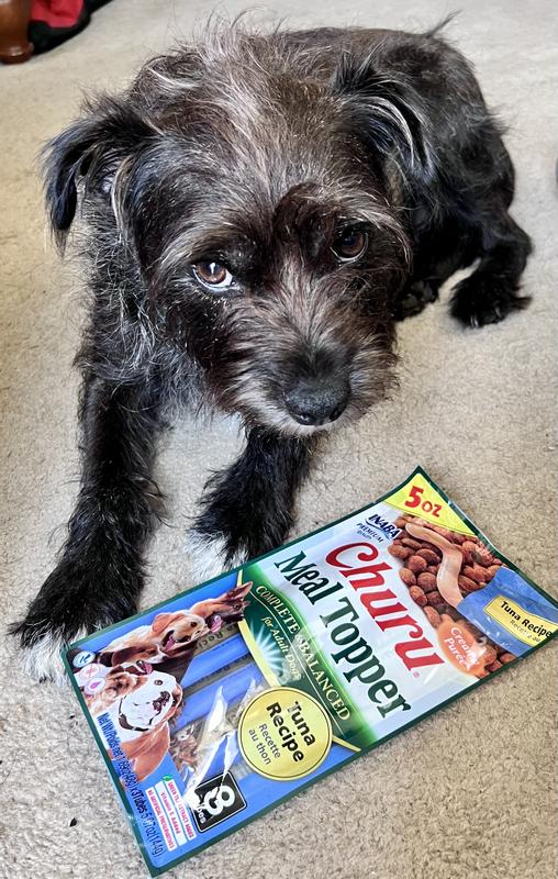 Our two goldens love the Tuna Meal Topper. Our boy Harley needs to take meds for hypothyroid and he HATES his daily pill. We try to put it in his breakfast bowl but somehow he manages to eat ALL the food leaving this tiny little pill behind. We have tried cheese and turkey...nope. Even PB because it so thick he licks and smacks to get it down and can find it hidden in the spoonful. He is a trickster! So we tried the Tuna Topper...ALL GONE!! We also give it to them as a training treat and they love it! We found it easy for them to lick right off of the packet. Although we wanted it for our doggos, our cat will not leave us alone when we tear into a pouch so we will have to get some more to share among the whole crew. Highly recommend this product!!