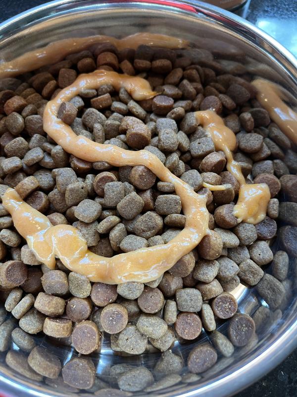 • This tasty, creamy purée is perfect to use as training treats, a treat spread on their favorite lick mat or in their favorite enrichment toy, or as a topper for dry food.