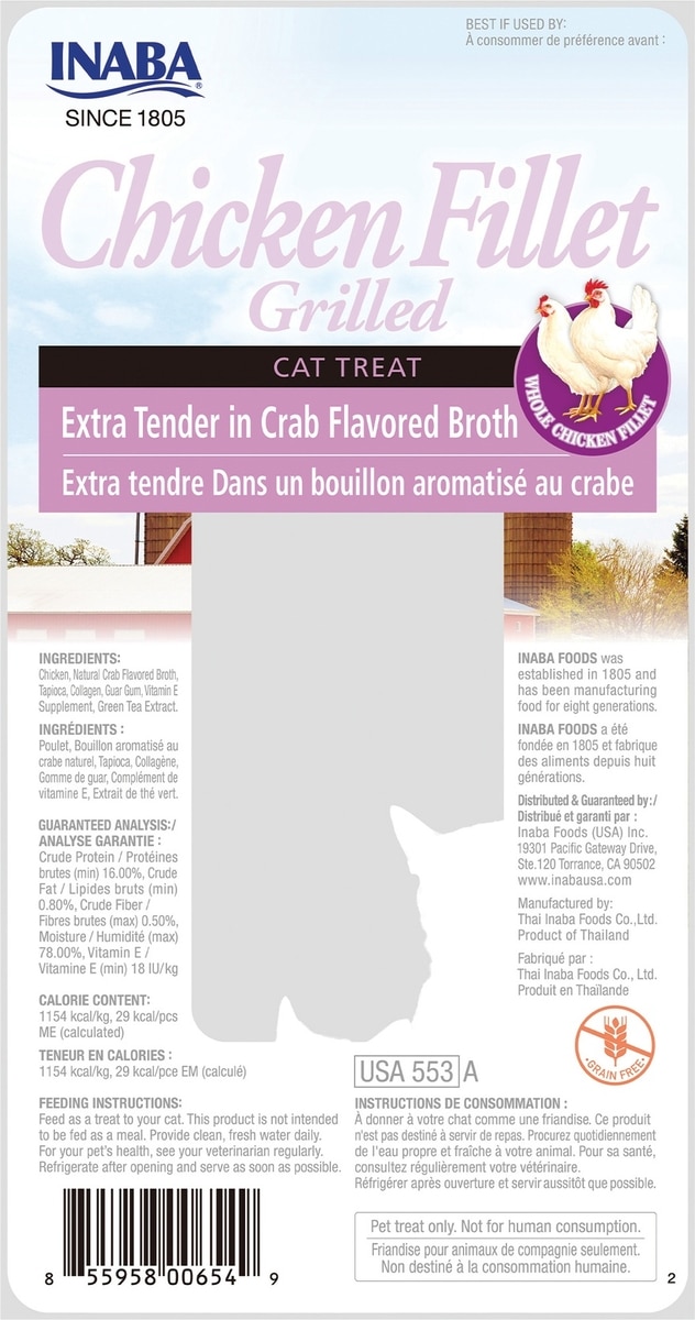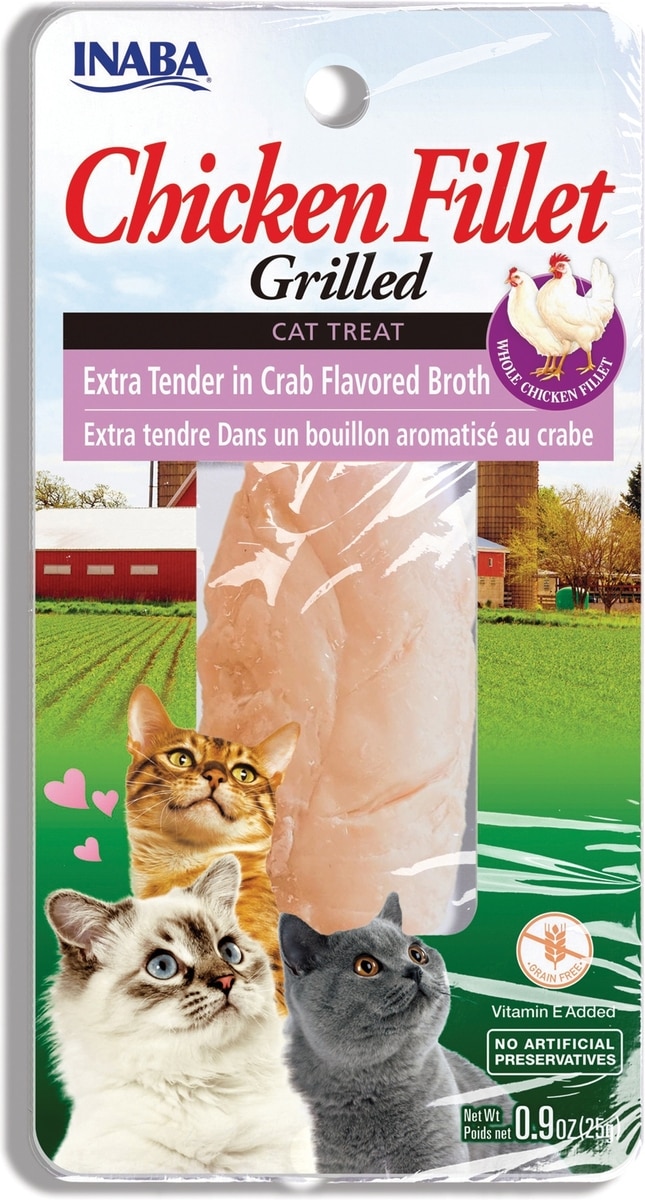 - DealInaba Grilled Chicken Fillet in Chicken Flavored Broth Grain-Free Cat Treat, .9oz pouch, 1ct$1.19 Chewy Price$2.49 List Price$1.13 Autoship PricePromo, New Customers Only: Spend $49+, Get $20 eGift Card