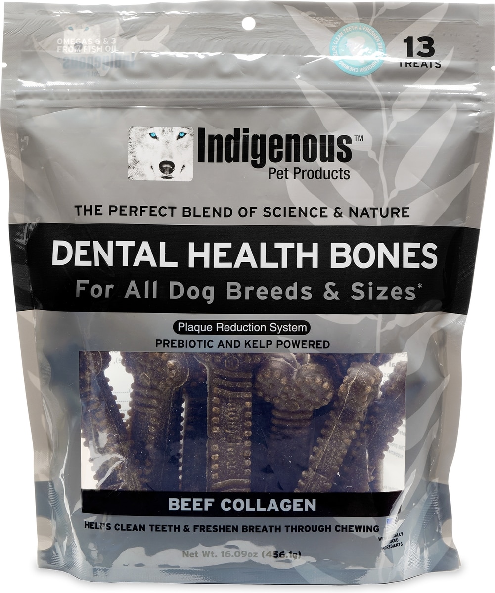 Indigenous Pet Products Dental Health Bones Beef Collagen Flavor Dog Treats, Large, 13 count