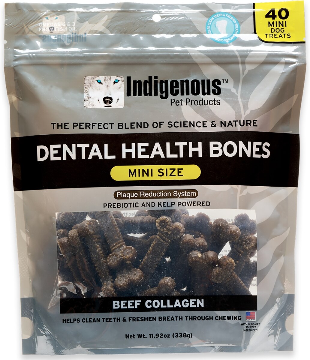 Indigenous Pet Products Dental Health Bones Beef Collagen Flavor Dog Treats, Mini, 40 count