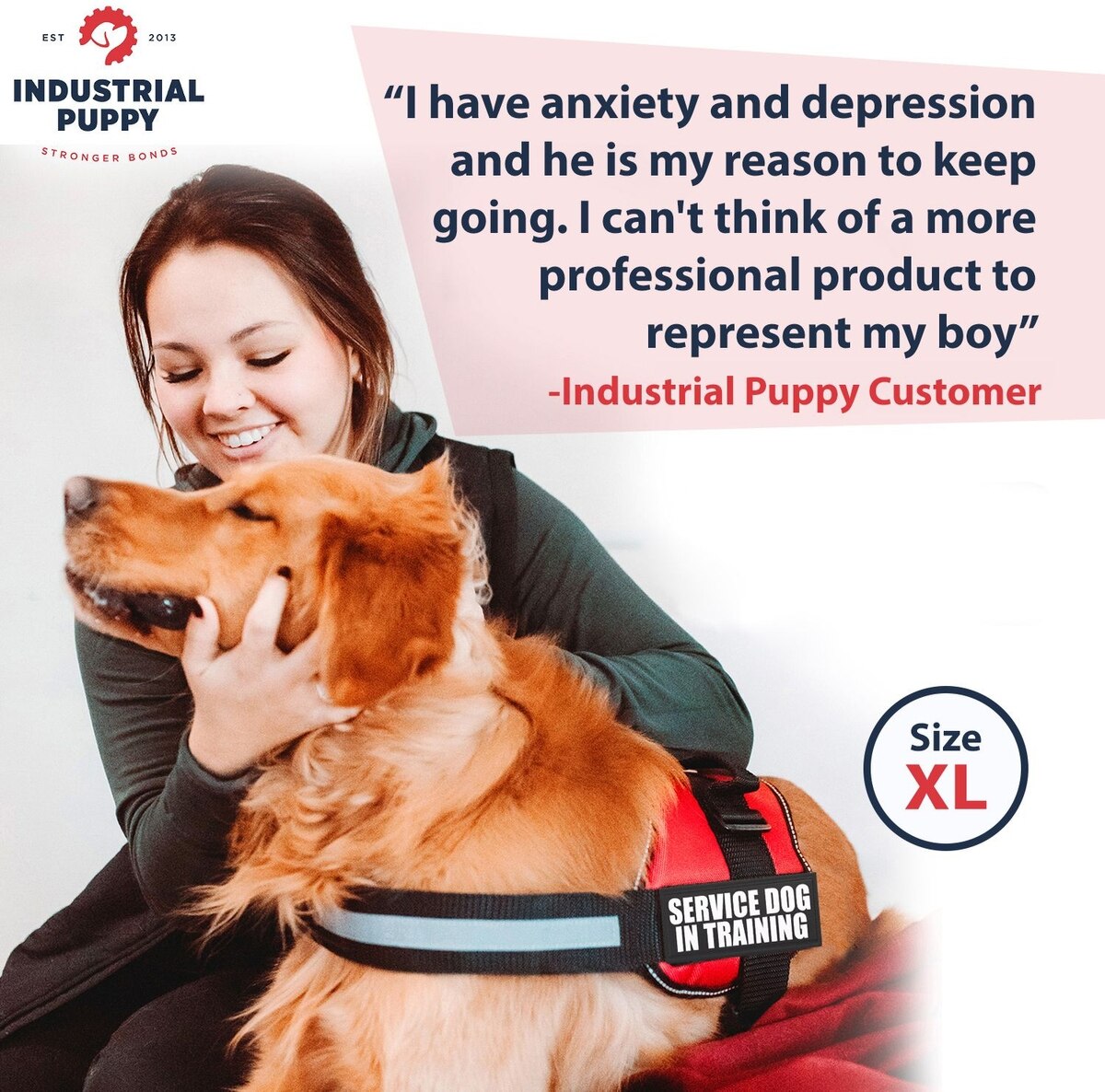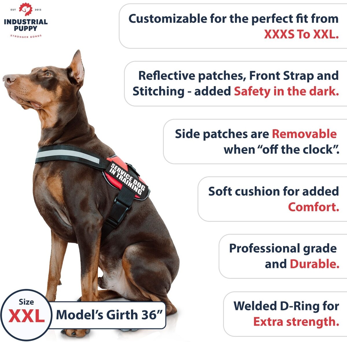 Industrial Puppy Emotional Support Animal ESA Reflective Dog Harness & Leash, Red, XX-Large: 33 to 43-in chest