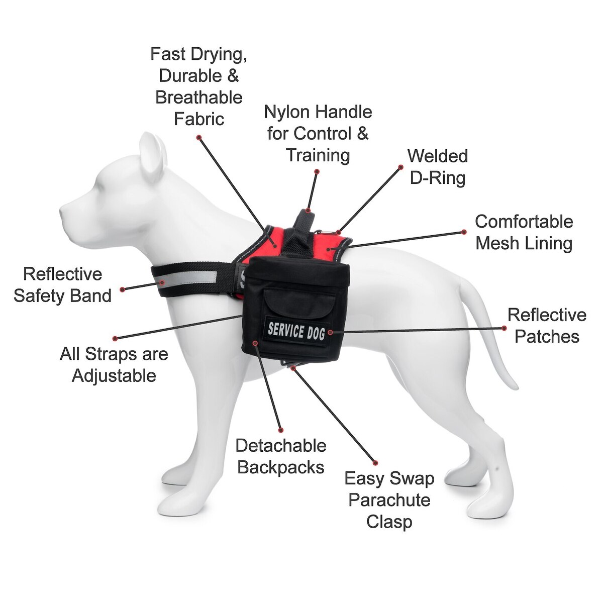 Industrial Puppy Reflective Service Dog Harness & Detachable Backpacks, Red, Large: 27 to 33.5-in chest