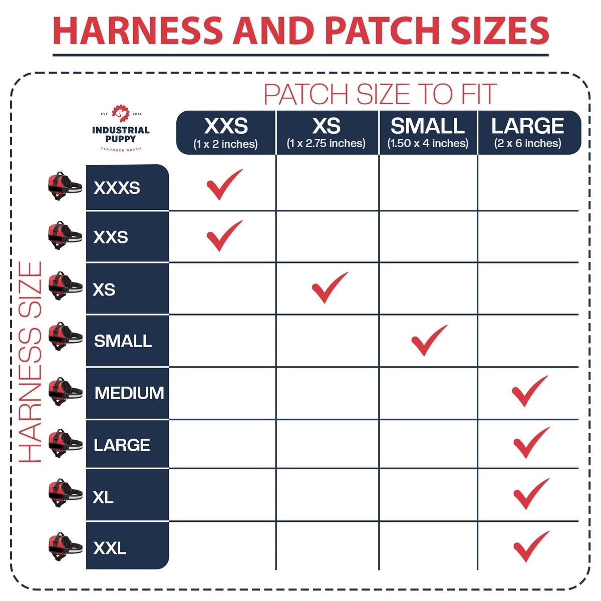 The Small patches fit the size Small Industrial Puppy Harness.