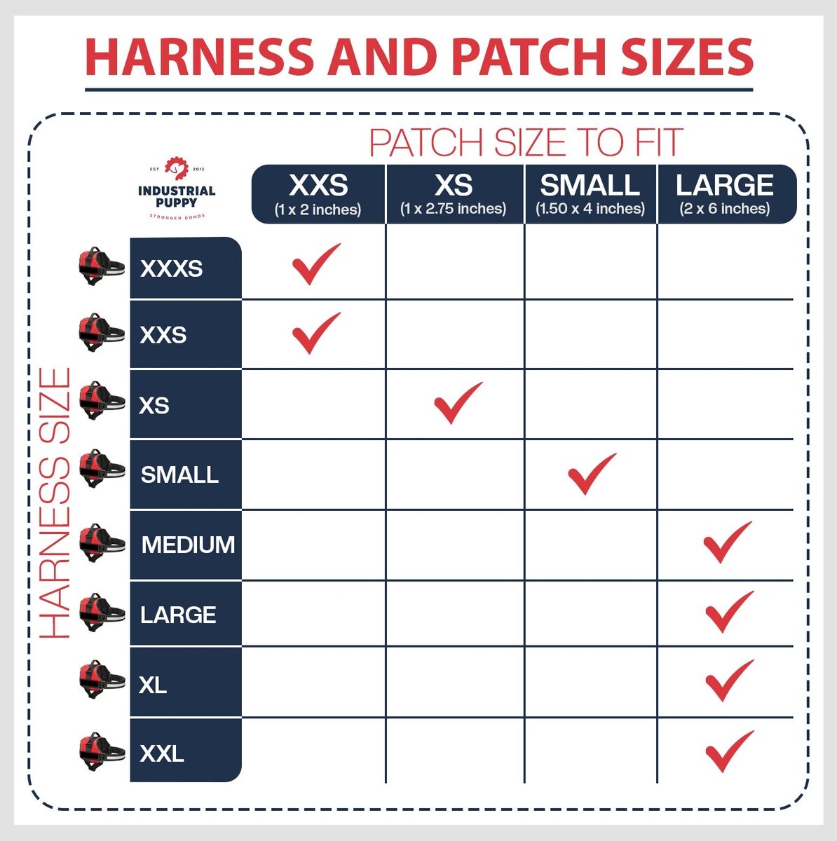 I have included a sizing chart that details which patch sizes and harness sizes are compatible.