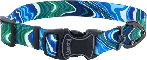 Inspire Adjustable Fashion Polyester Standard Dog Collar, Malachite Magic, Small: 10 to 14-in neck, 5/8-in wide