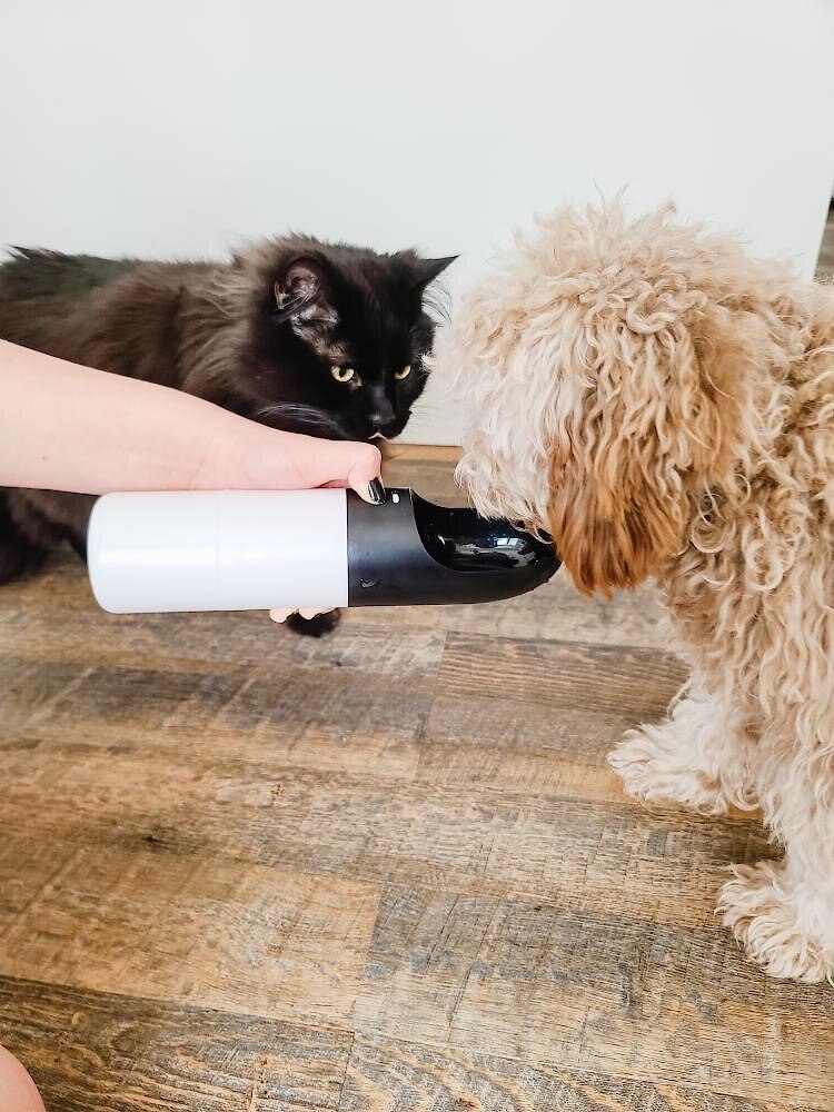 I've been wanting one of these dog water bottles for ages. It's such a hassle to carry water and food for day-long trips. Finally got it a few days ago, and it's awesome! No need for batteries, just a simple button to control the flow. Plus, if my dog only takes a sip, I can put the water back in, so there is no wastage.