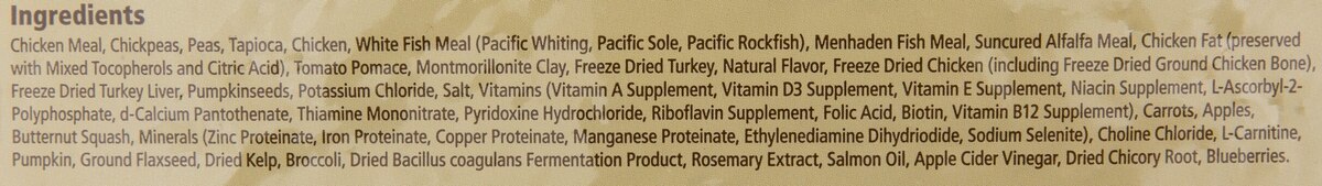 While both formulas have the turkey and chicken meal added to them, the Instinct by Nature's Variety Raw Boost Healthy Weight Grain-Free Chicken has the menhaden fish meal and the regular will have salmon meal added to it. The percentage in the protein content is 33% with 348 calories per cup, while the Instinct by Nature's Variety Raw Boost Grain-Free Recipe with Real Chicken has a protein content of 37% and 491 calories per cup. Although most of the vegetables are included in both formulas, the ingredients may vary slightly.