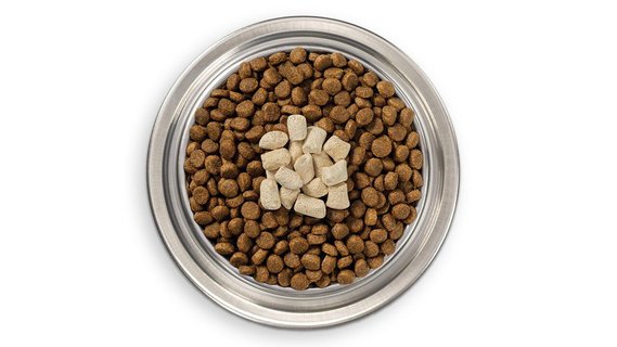 High-protein, raw-coated kibble with freeze-dried raw pieces provides raw-boosted nutrition and delicious taste.