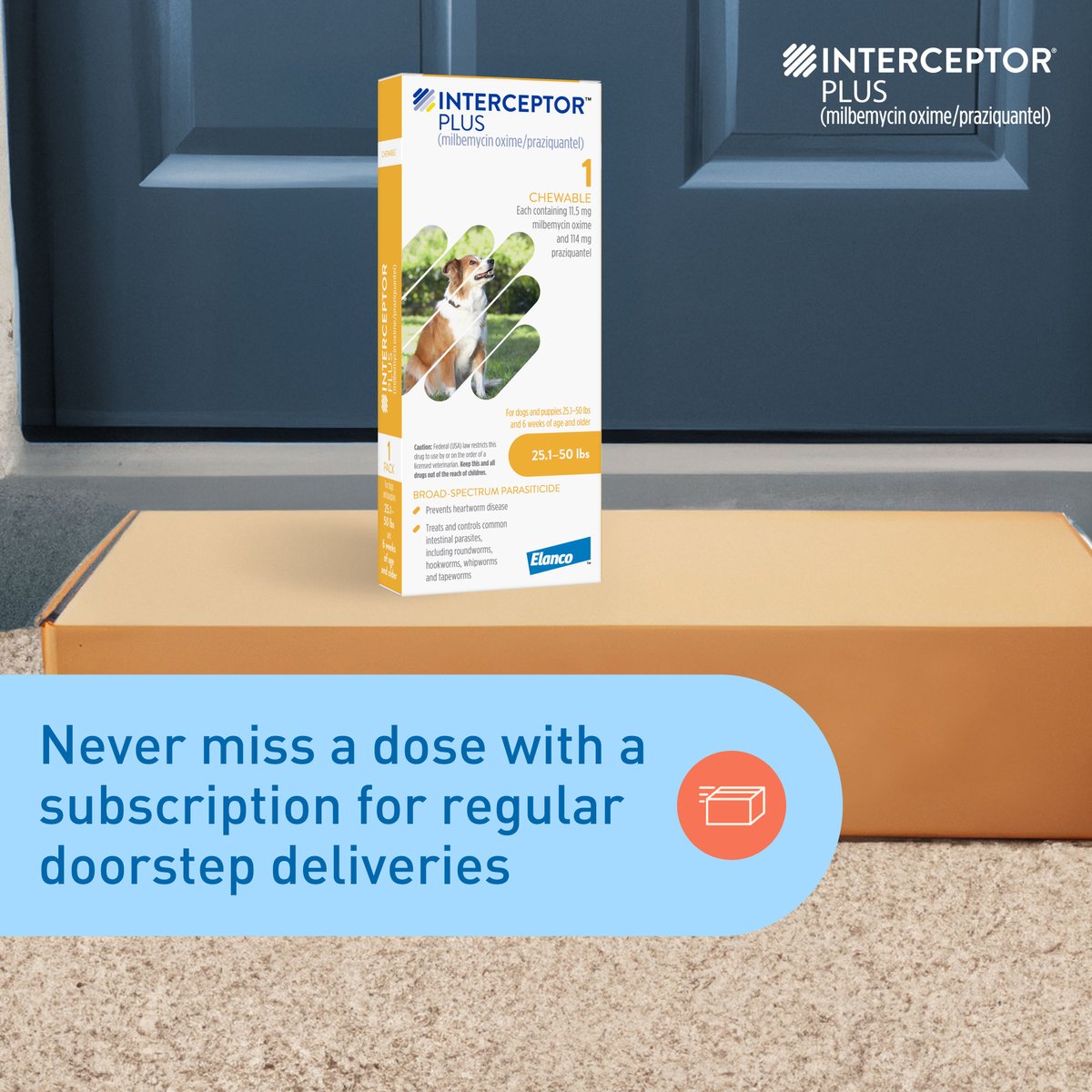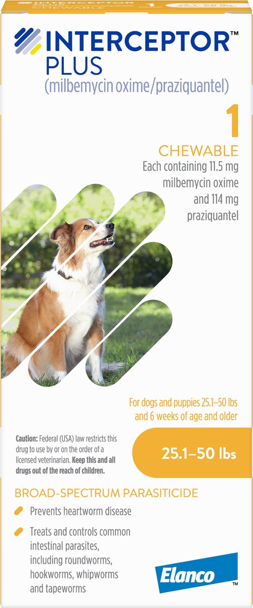 Interceptor Plus Chew for Dogs, 25.1-50 lbs, (Yellow Box), 1 Chew (1-mo. supply)