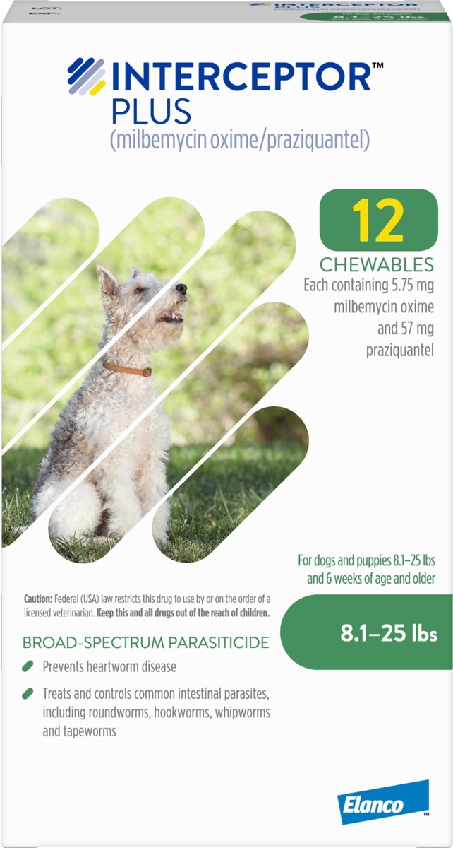 Interceptor Plus Chew for Dogs, 8.1-25 lbs, (Green Box), 12 Chews (12-mos. supply)