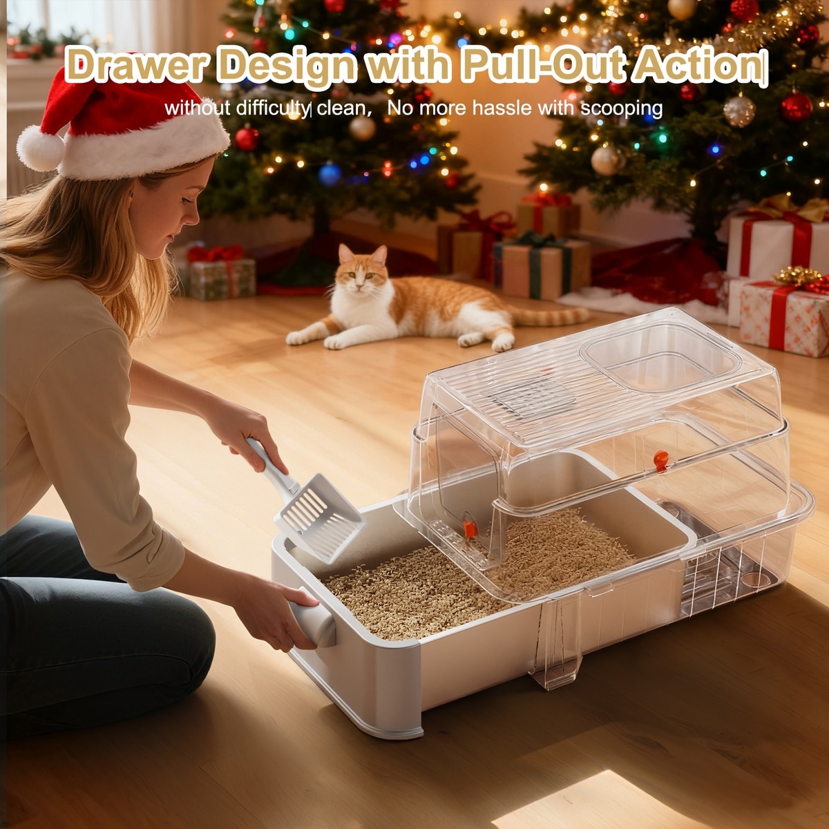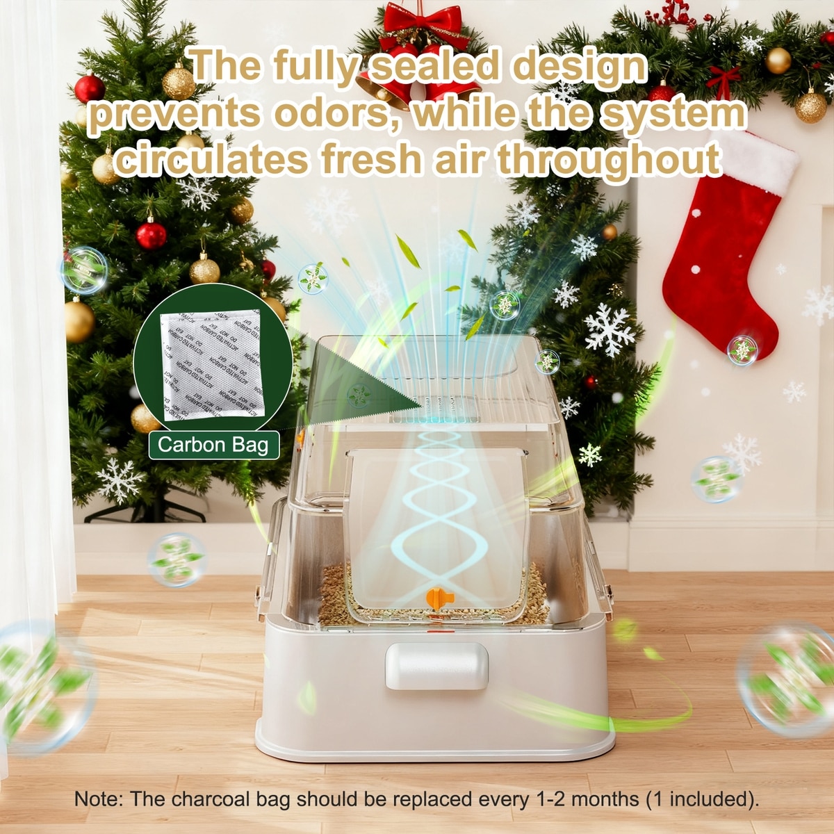 Invenho 46-L Leak-Proof Odor Control Enclosed Cat Litter Box with Drawer & Triple Filtration System, 24-in, Silver Gray