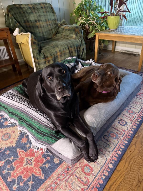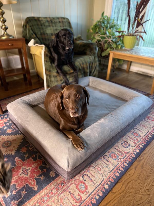The Invirox Orthopedic Waterproof Memory Foam Couch Dog Bed checks all the boxes! We have the jumbo size and it fits one lab very comfortably and two of the them can be super cozy together. The dogs love the bolster around the edge. I appreciate the memory foam support because they are getting older. I like the option of a waterproof cover but found it noisy and since we didn't need it, I took it off- very easy to do! I stored the cover in case we want it one day. It's well-made, sturdy and the dogs say it's comfy, too. We would recommend this dog bed!
