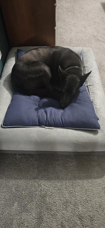 This bed is very stylish with a cover that looks like brushed suede. It is very cushioned so it’s perfect for pets like mine with arthritis. The cover has a zipper