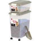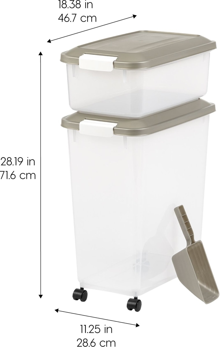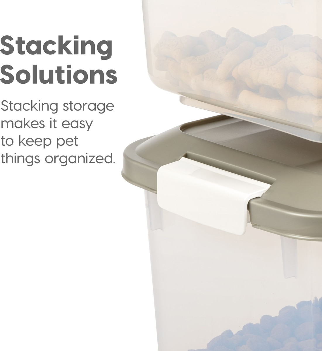 IRIS 3-Piece WeatherPro Airtight Stackable Dog, Cat & Bird Food Storage Container Combo with Scoop & Treat Box, Clear/Gray, 54-lb