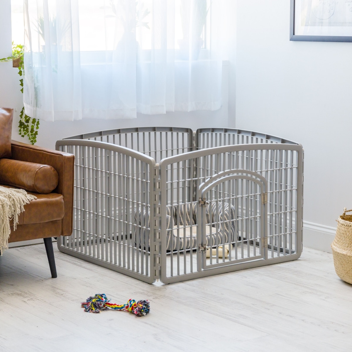 IRIS 4-8 Panel Dog Exercise Playpen with Door, 24-in, Light Gray