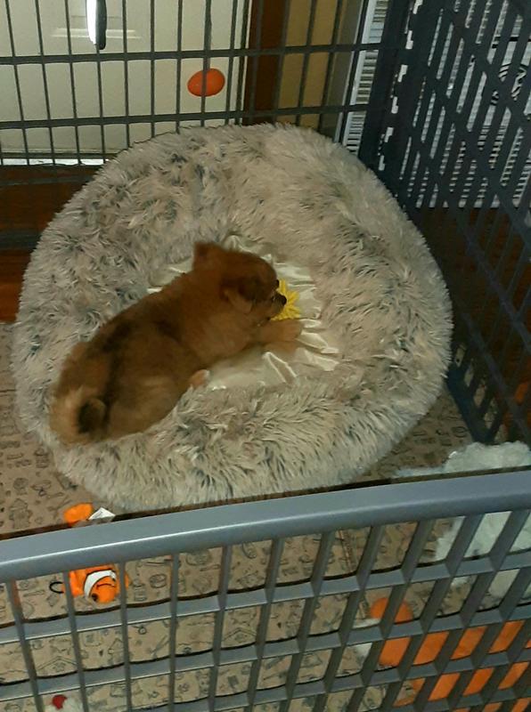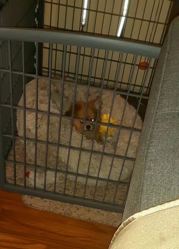 We brought this for our new mini golden doodle puppy to limit him around the house during potty training. There was just enough space for a puppy pad, space for