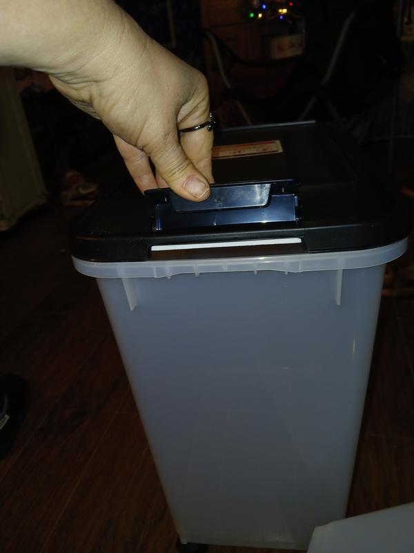 Although this is designed for food, I found it excellent to store my clay litter! I merely have to open it, scoop out for top ups and so easy to open and close!