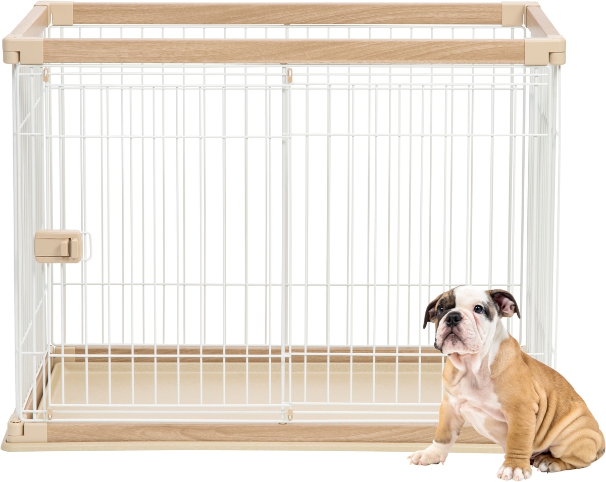 This crate was amazing until it wasn’t. Looks nice, easy to assemble and clean. My 6 month old French bulldog learned how to climb out of it and almost hurt herself badly. I so wish there was a top made for this cage!