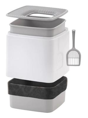 IRIS Premium Square Top Entry Cat Litter Box with Scoop, White & Gray, Large