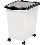 IRIS WeatherPro Airtight Attachable Wheels Dog, Cat & Bird Food Storage Container, Pearl & Navy, 35-lb