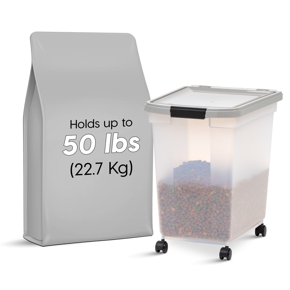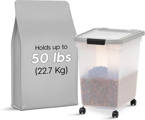 IRIS WeatherPro Airtight Dog, Cat & Bird Food Storage Container, Clear/Gray, Large
