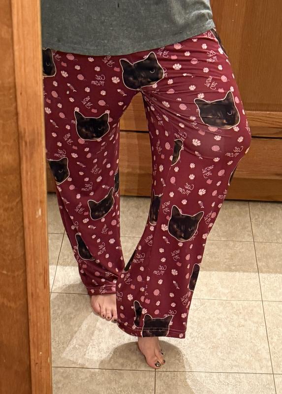 ISlide Personalized Cat Mom Cat Pajama Bottoms, Magenta, Small