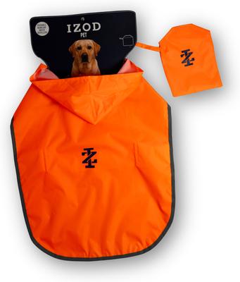 IZOD Pet Dog Packable Raincoat, Orange, Medium