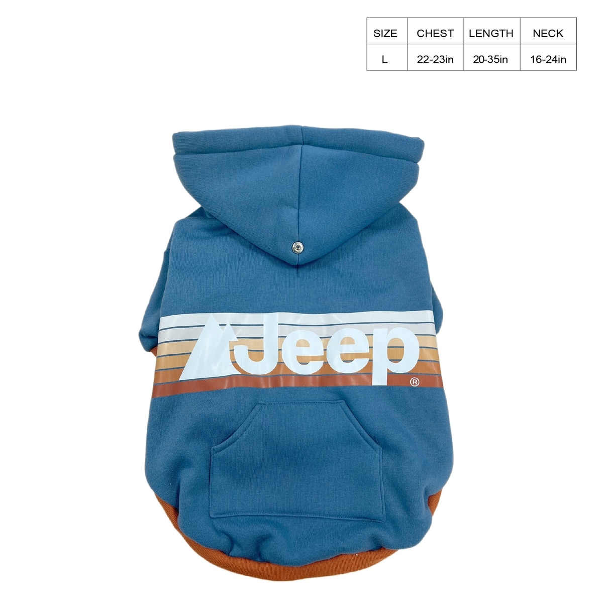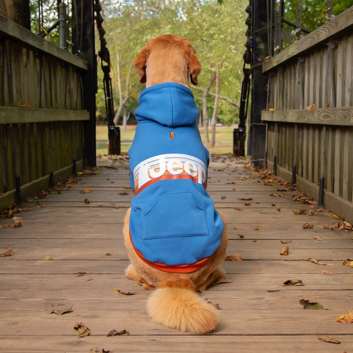 Jeep Vintage Logo Dog Hoodie, Blue, Large, Hoodie