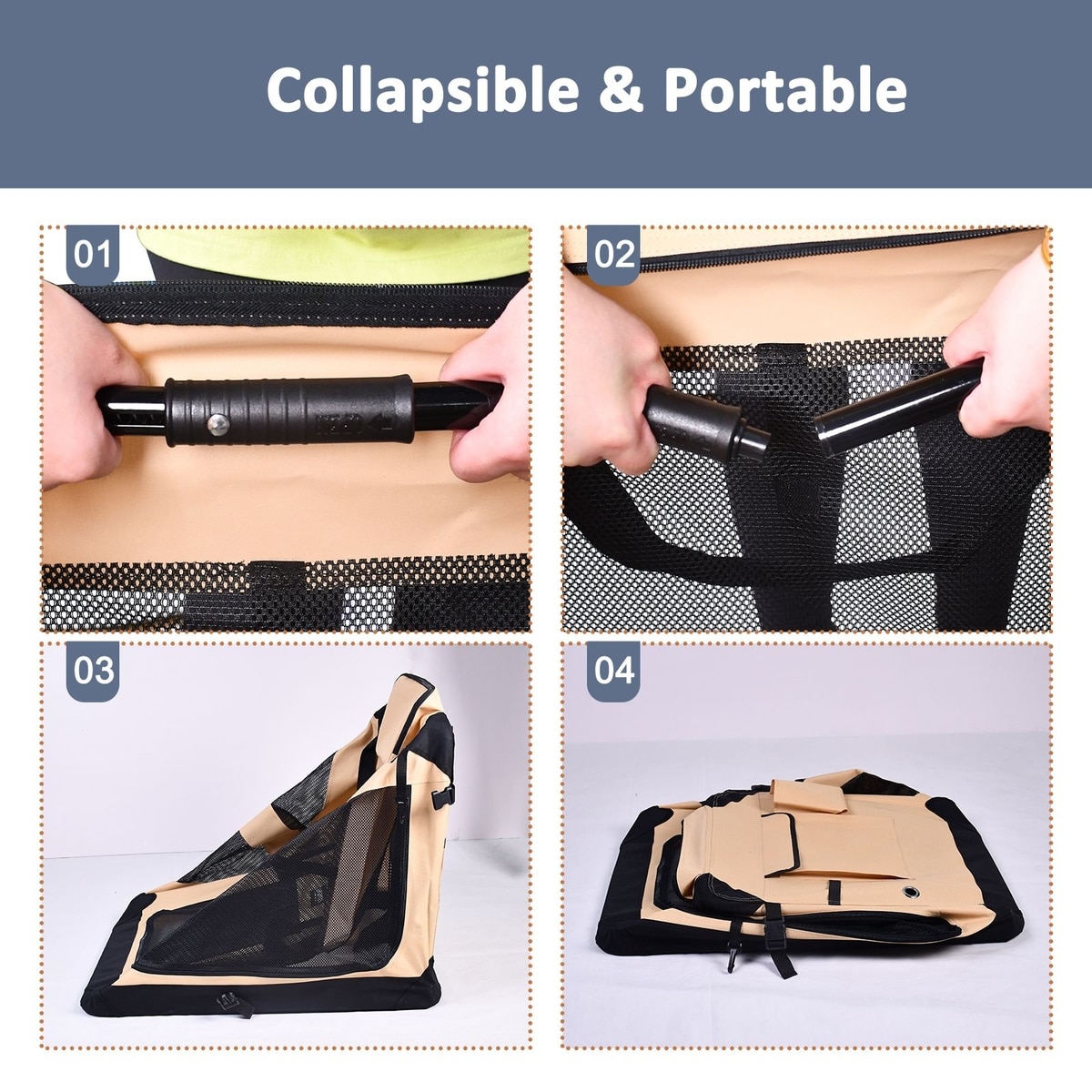Jespet 3-Door Collapsible Soft-Sided Dog Crate, Beige, 30 inch