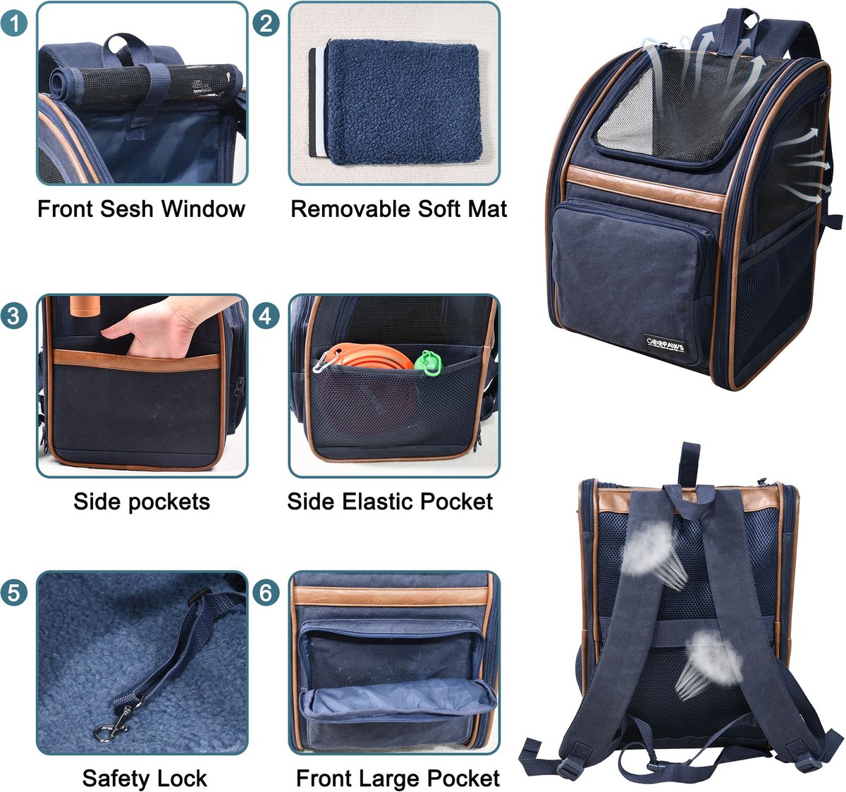 Jespet GOOPAWS Backpack Dog & Cat Carrier, Navy Blue