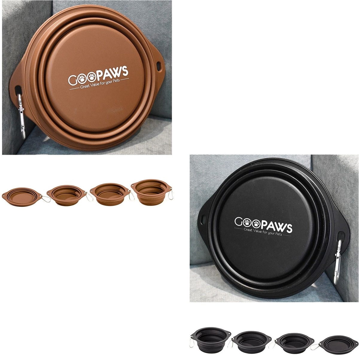 Jespet & GOOPAWS Silicone Non-Skid Travel Cat & Dog Bowl, 2 count, Black/Brown