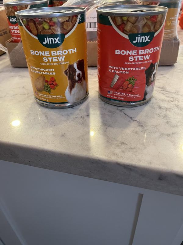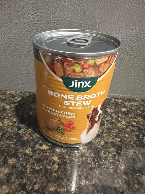 - DealJinx Bone Broth Stew with Beef & Vegetables Grain-Free Wet Dog Food, 13-oz can, case of 12$29.76 Chewy Price$35.99 List Price$28.27 Autoship PricePromo, Spend $100, Get $30 eGift Card with code NEWYEAR
