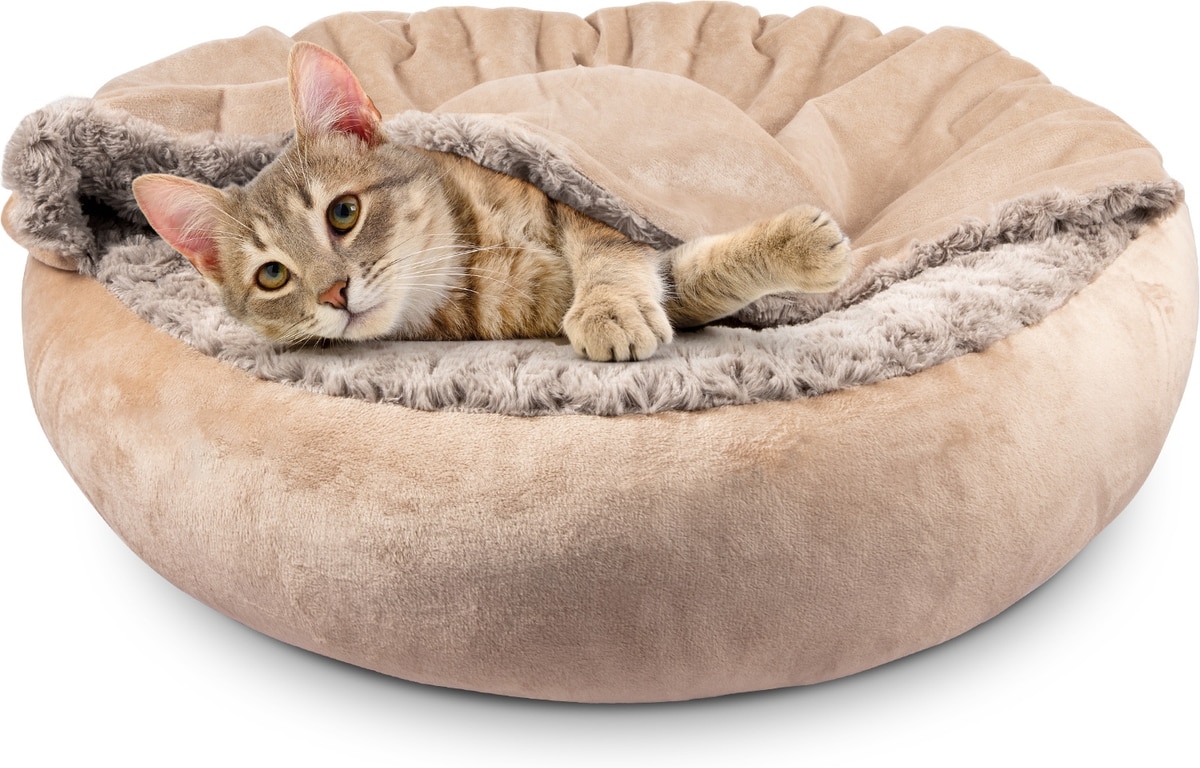 JOEJOY Cozy Cuddler Dog & Cat Bed with Hooded Blanket, Beige, Small